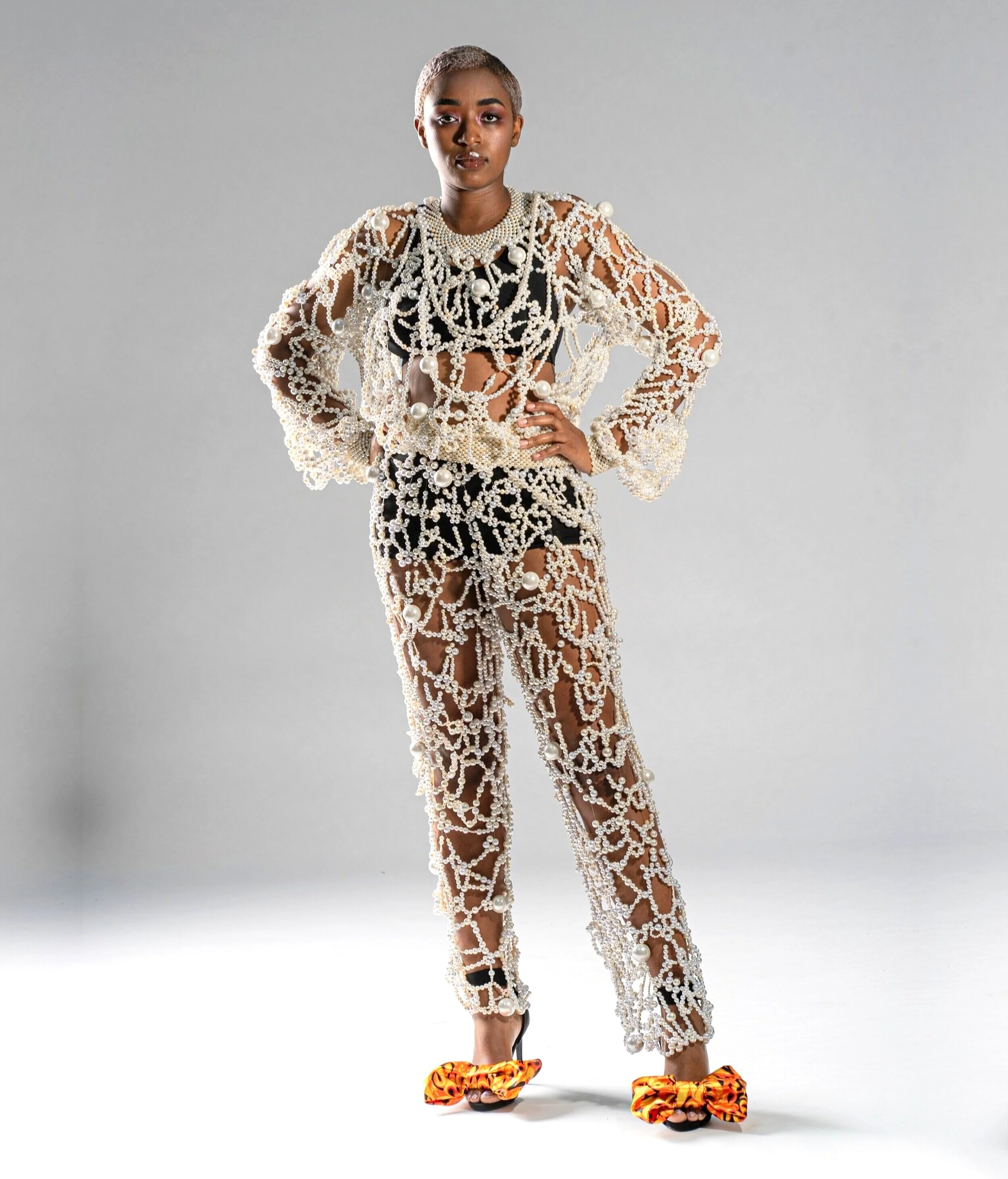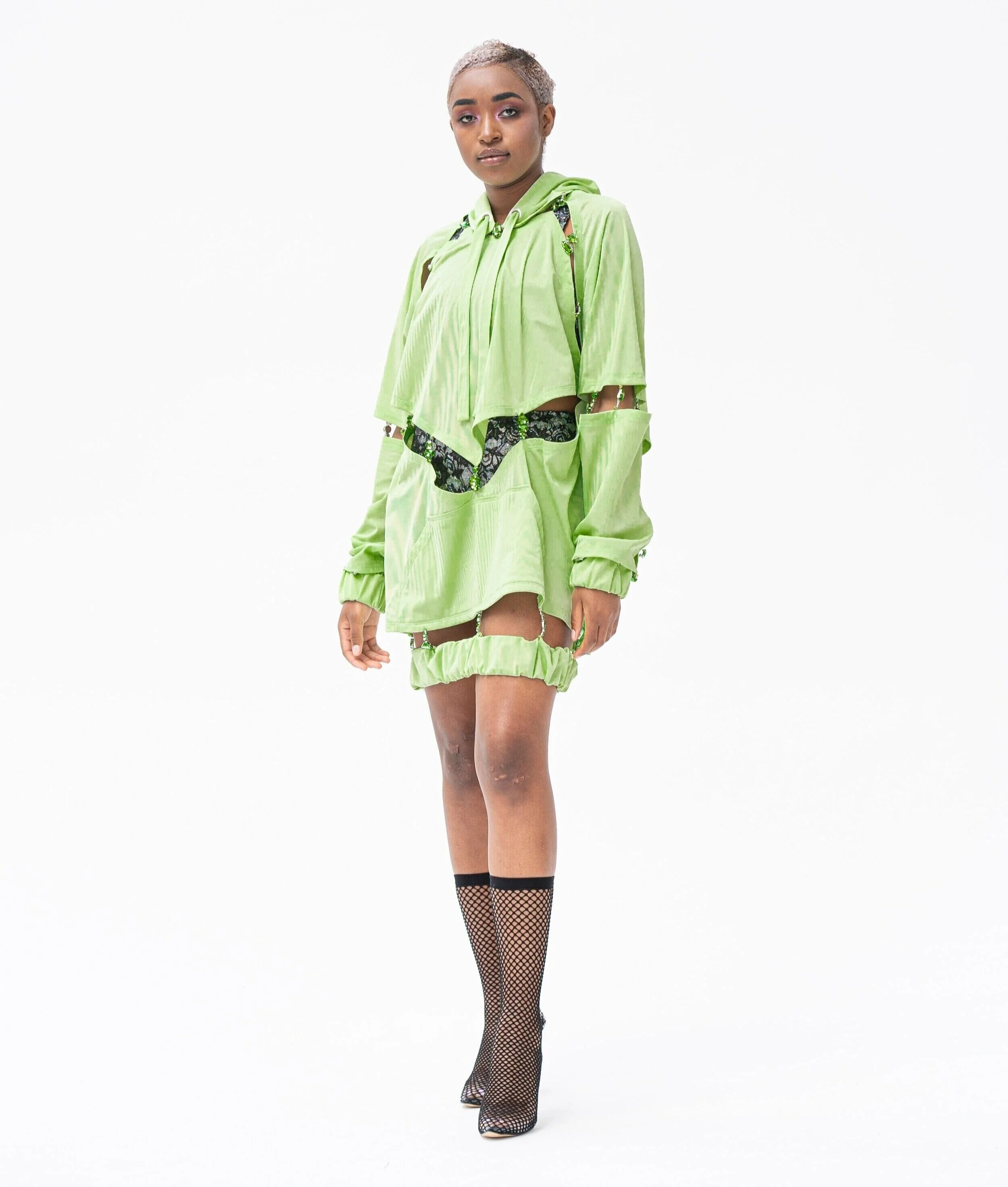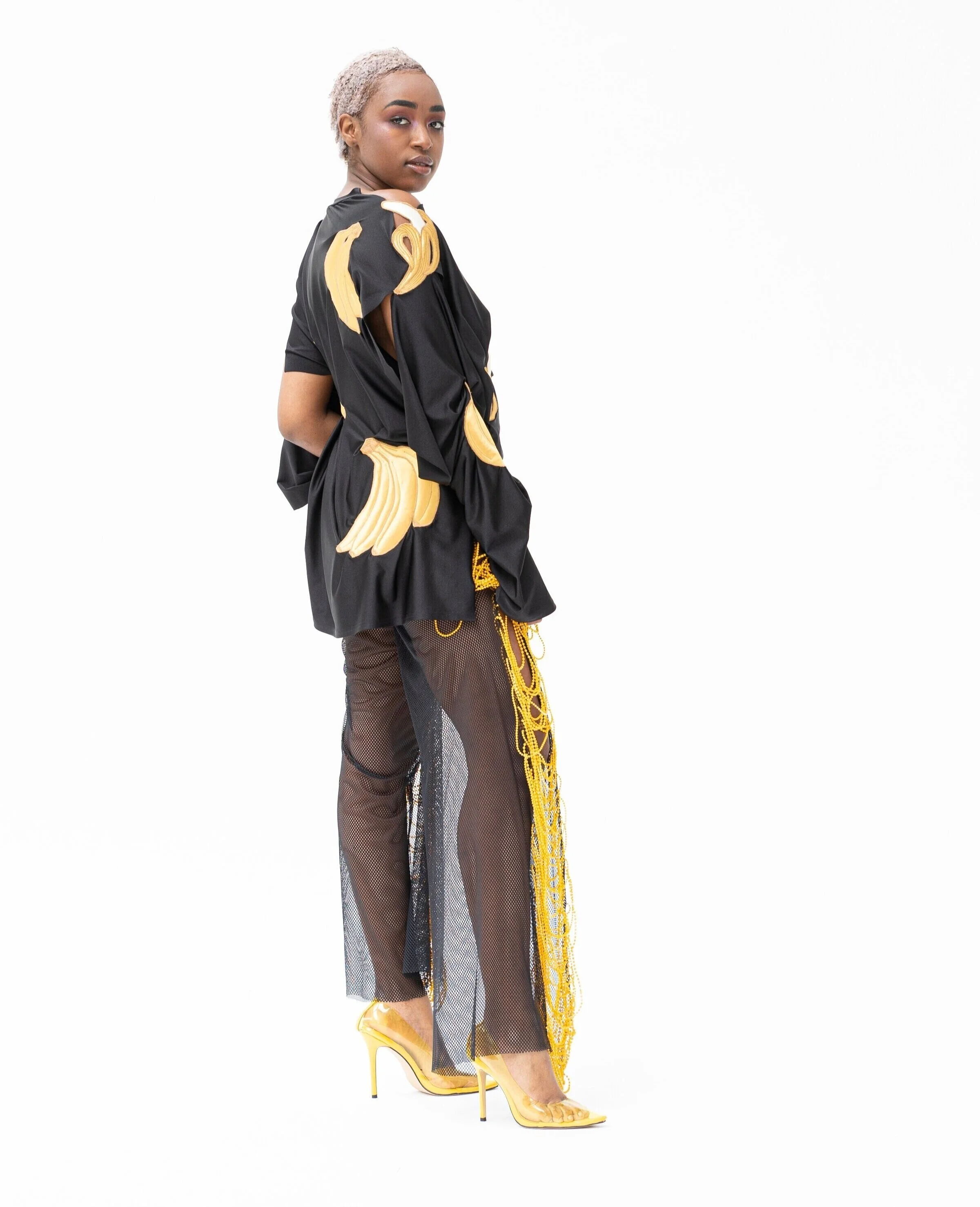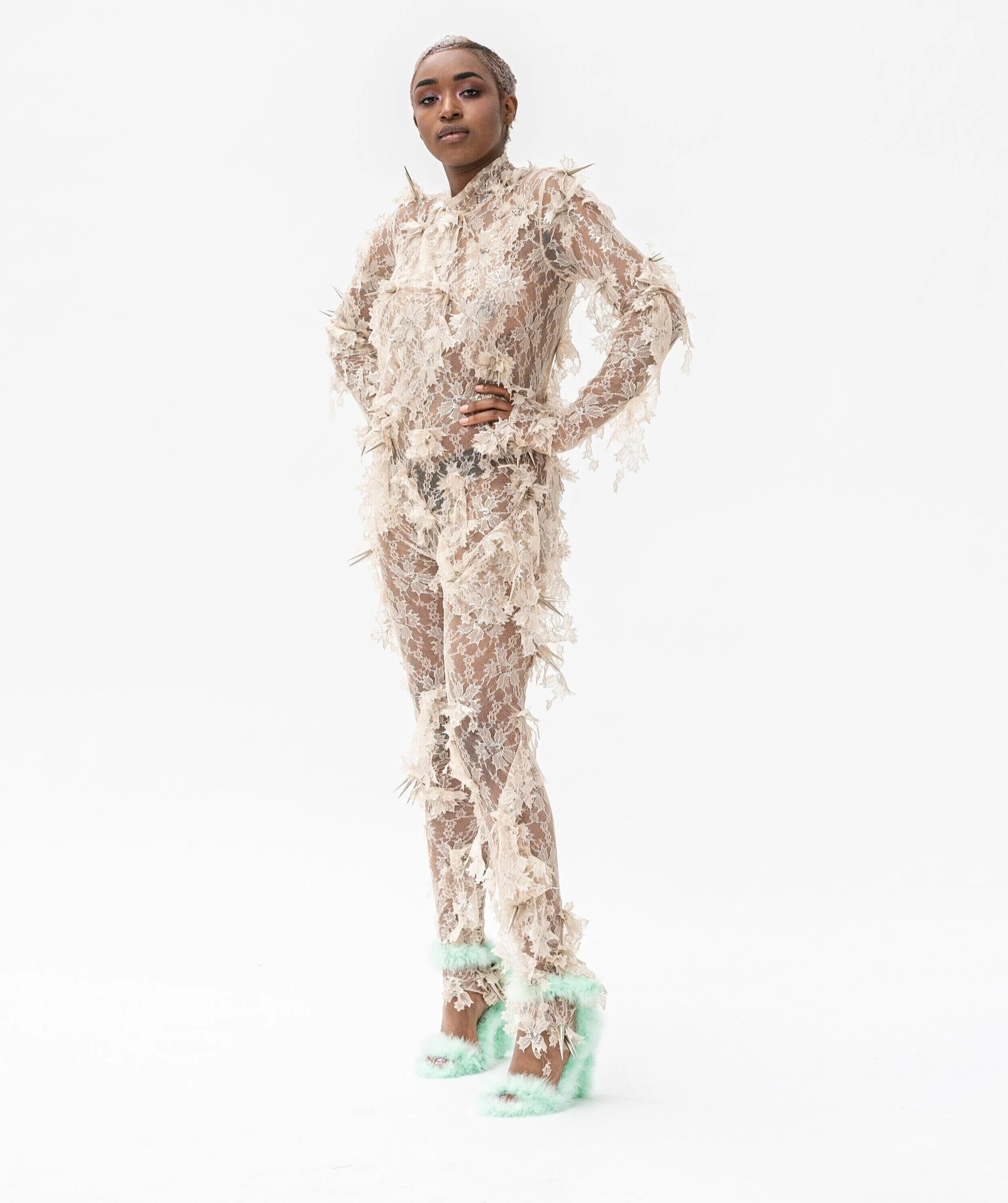 'Shiny Things' utforskar hur man kan omdefiniera uppfattningen av dekoration. Idén om vad dekorativa element är, och används till, vänds upp och ner när utsmyckningen fungerar som grundläggande verktyg för att skapa kläder och form. För att visa bredden av dekorativa tekniker och utsmyckning kan skapa, är alla plaggen olika. Arbetet behandlar också frågan om smak när det gäller utsmyckning. Genom användningen av dekorationer som ses som smaklösa vill Shiny Things ifrågasätta uppfattningarna om god och dålig smak. Material som sportväv i kombination med utsmyckning lurar ögat, och alla små dekorationer bildar tillsammans nya material. De nya sätten att använda utsmyckningar och de tidskrävande teknikerna påminner om haute couture tekniker, men på designerns eget sätt.